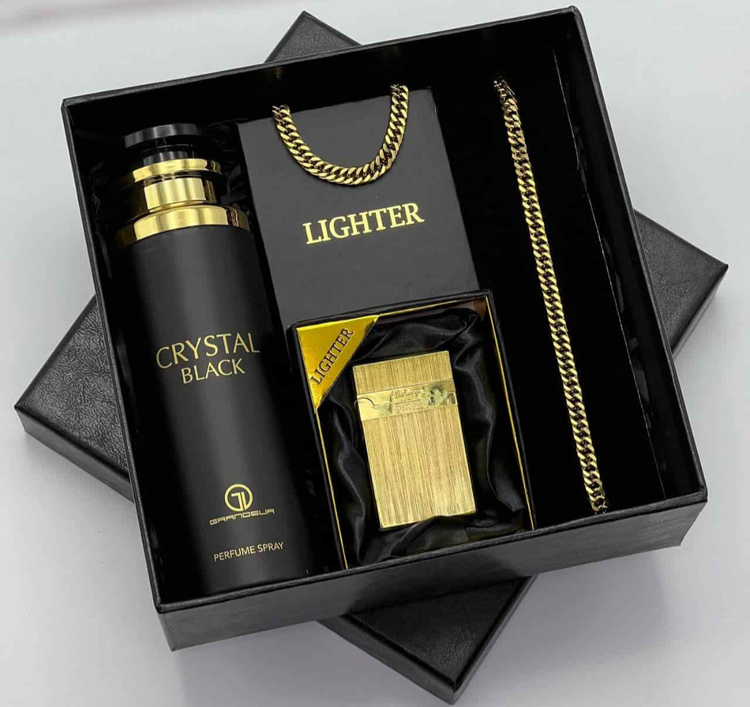 پک اکسسوری مردانه کد۵۴شامل ست دستبند و گردنبند و اسپری،فندک